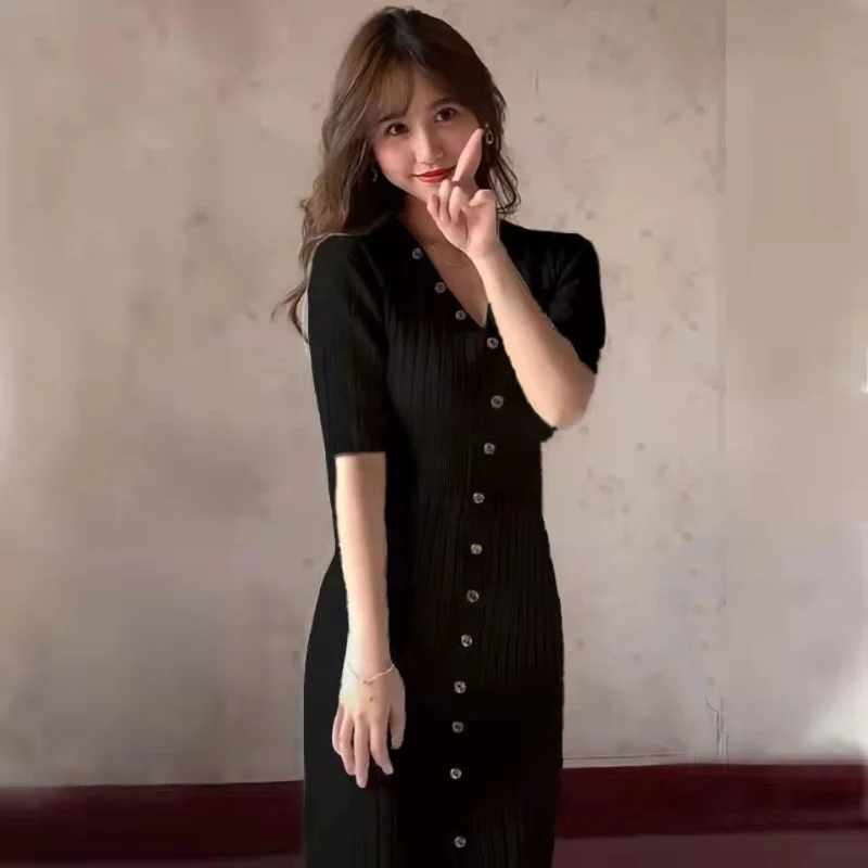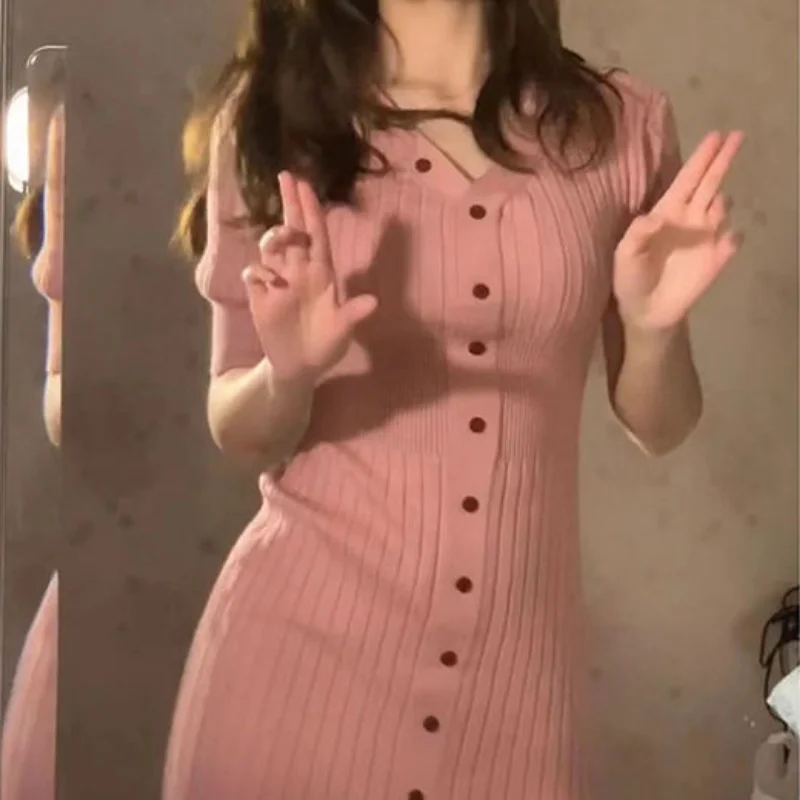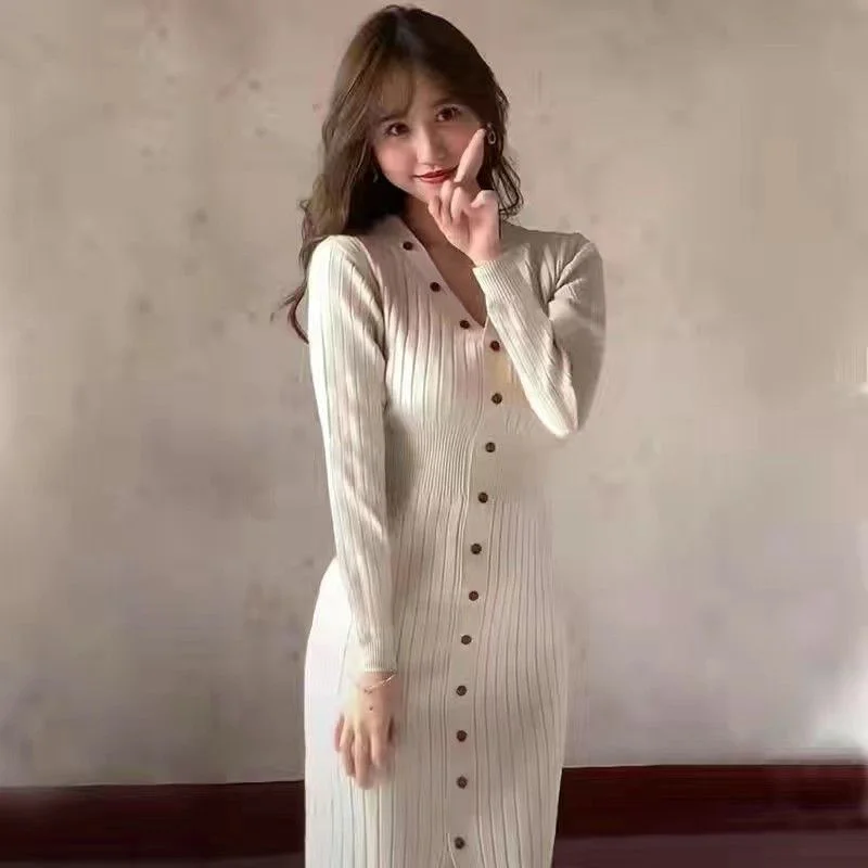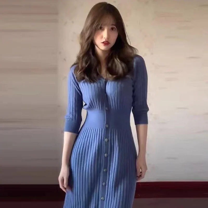 - اسم المنتج: فستان سويتر نسائي قطعة واحدة محبوك